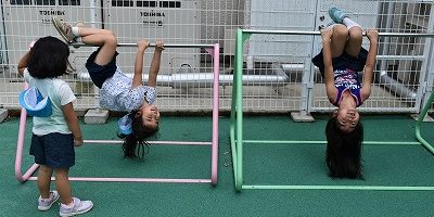 ぶら下がったり、幼稚部さんは「ぶたのまるやき」や
