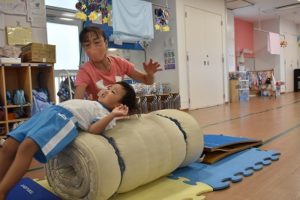 水遊びが大好きな、なでしこ組は「水が気持ちいね」と