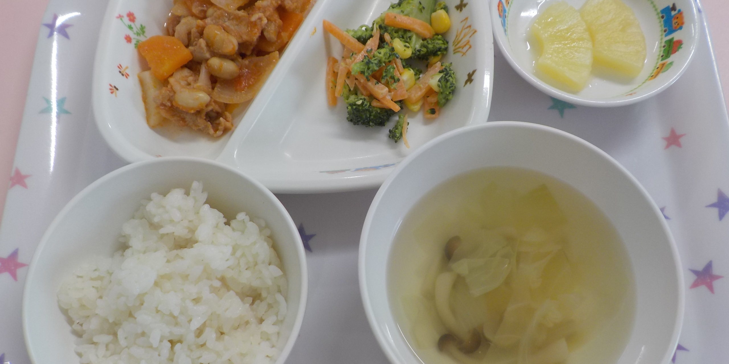 12月242020あおぞら給食<給食> ・ポークビーンズ ・彩りナムル ・ごはん ・コンソメスープ ・パイン <おやつ> ・牛乳 ・チーズボールフライ Category: あおぞら給食2020年12月24日 Share this post Share on FacebookShare on Facebook Share on XShare on X Post navigationPreviousPrevious post:12月23日(水)NextNext post:イルミネーション飾り 最終日🎄Related posts11月17日(月)2025年11月17日11月15日(土)2025年11月15日11月14日(金)2025年11月14日11月13日(木)2025年11月13日11月12日(水)2025年11月12日11月11日(火)2025年11月11日11月10日(月) ☆七五三メニュー2025年11月10日11月8日(土)2025年11月8日11月7日(金)2025年11月8日11月6日(木)2025年11月6日11月5日(水)2025年11月5日11月4日(火)2025年11月5日11月1日(土)2025年11月1日10月31日(金)2025年11月1日10月30日(木) ☆ハロウィンメニュー2025年10月30日10月29日(水)2025年10月29日10月28日(火)2025年10月28日10月27日(月)2025年10月27日10月25日(土)2025年10月25日10月24日(金)2025年10月24日10月23日(木)2025年10月23日10月22日(水)2025年10月22日10月21日(火)2025年10月21日10月20日(月)2025年10月20日