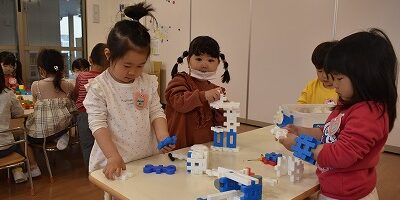 ちゅーりっぷ組から上がったお友だちは園内散歩で新しいお友だちと