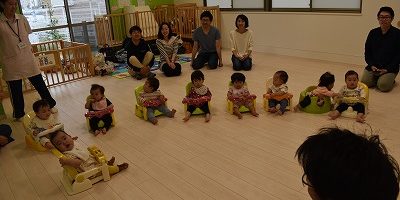 その後は親子で向き合ってにらめっこや一本橋こちょこちょをして