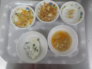 (五倍粥、しらす、にんじん、ほうれん草)