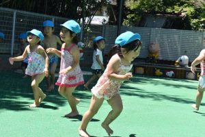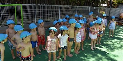 その後、幼稚部さんは水着に着替えて水遊びをしました。