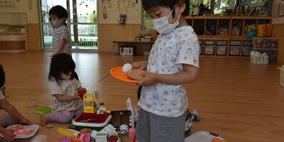 お皿において「はい!どうぞ」と友達や先生にごちそうする姿が多く見られました。