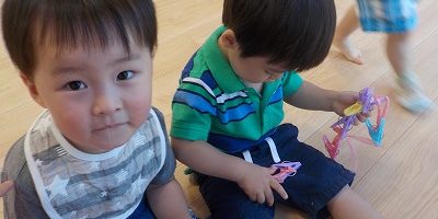 次に洗濯ばさみを使って遊びました。子供たちは繋げて怪獣を作ったり