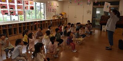なでしこ組のみんなは新しく英語の歌と、自分の気持ち(嬉しい気持ち、楽しい気持ち)などを教えてもらい発音しました。