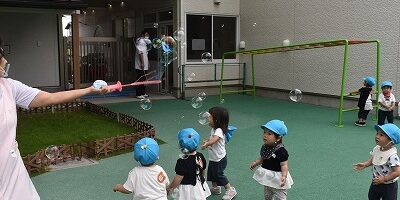 その後はシャボン玉を使って遊びました。
