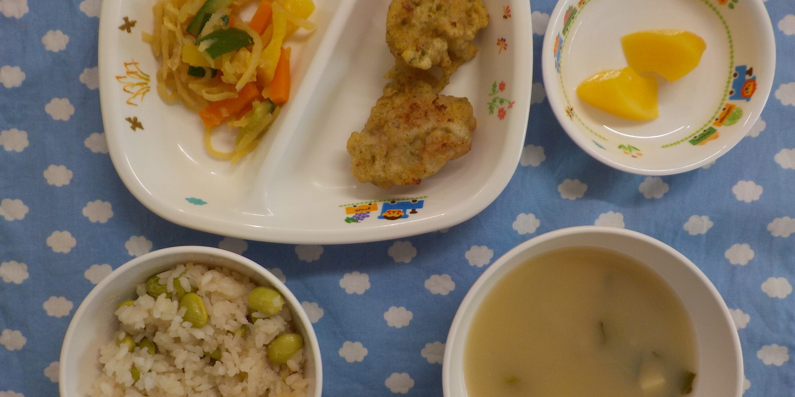 7月42022あおぞら給食 <給食> ・鶏天 ・カミカミ和え ・塩こんぶと枝豆のごはん ・味噌汁 ・もも <おやつ> ・りんごジュース ・ミニピザ Category: あおぞら給食2022年7月4日 Share this post Share on FacebookShare on Facebook Share on XShare on X Post navigationPreviousPrevious post:7月2日(土)NextNext post:7月4日(月)Related posts12月3日(水)2025年12月3日12月2日(火)2025年12月2日12月1日(月)2025年12月1日11月29日(土)2025年11月29日11月28日(金)2025年11月28日11月27日(木)2025年11月27日11月26日(水)2025年11月26日11月25日(火)2025年11月25日11月22日(土)2025年11月22日11月21日(金)2025年11月21日11月20日(木)2025年11月20日11月19日(水)2025年11月19日11月18日(火)2025年11月18日11月17日(月)2025年11月17日11月15日(土)2025年11月15日11月14日(金)2025年11月14日11月13日(木)2025年11月13日11月12日(水)2025年11月12日11月11日(火)2025年11月11日11月10日(月) ☆七五三メニュー2025年11月10日11月8日(土)2025年11月8日11月7日(金)2025年11月8日11月6日(木)2025年11月6日11月5日(水)2025年11月5日