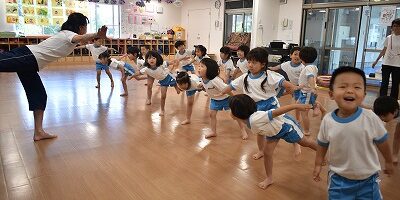 ひとり技の一本足バランスや柔軟などをおしえてもらいました。
