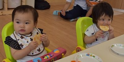 保育部さんではおやつを食べた後におままごとやブロックで