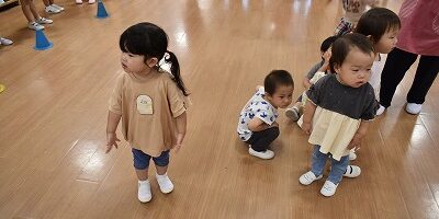 お兄さんお姉さんの動きを真似して手をたたいたり