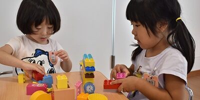 今日のなでしこさんは、お部屋でブロック遊びや盆踊り練習をしました。
