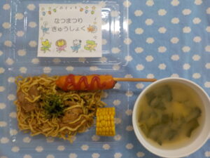 ☆今日は夏まつりだったので給食もそれにちなんだメニューでした。