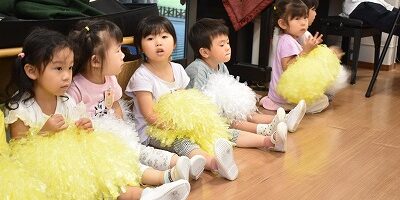 なでしこ組はミッキーマウスマーチを踊った後、あじさい組さんとひまわり組さんのマーチングを見ました。