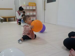 今日のこでまり組さんは、お部屋で風船遊びをしました。