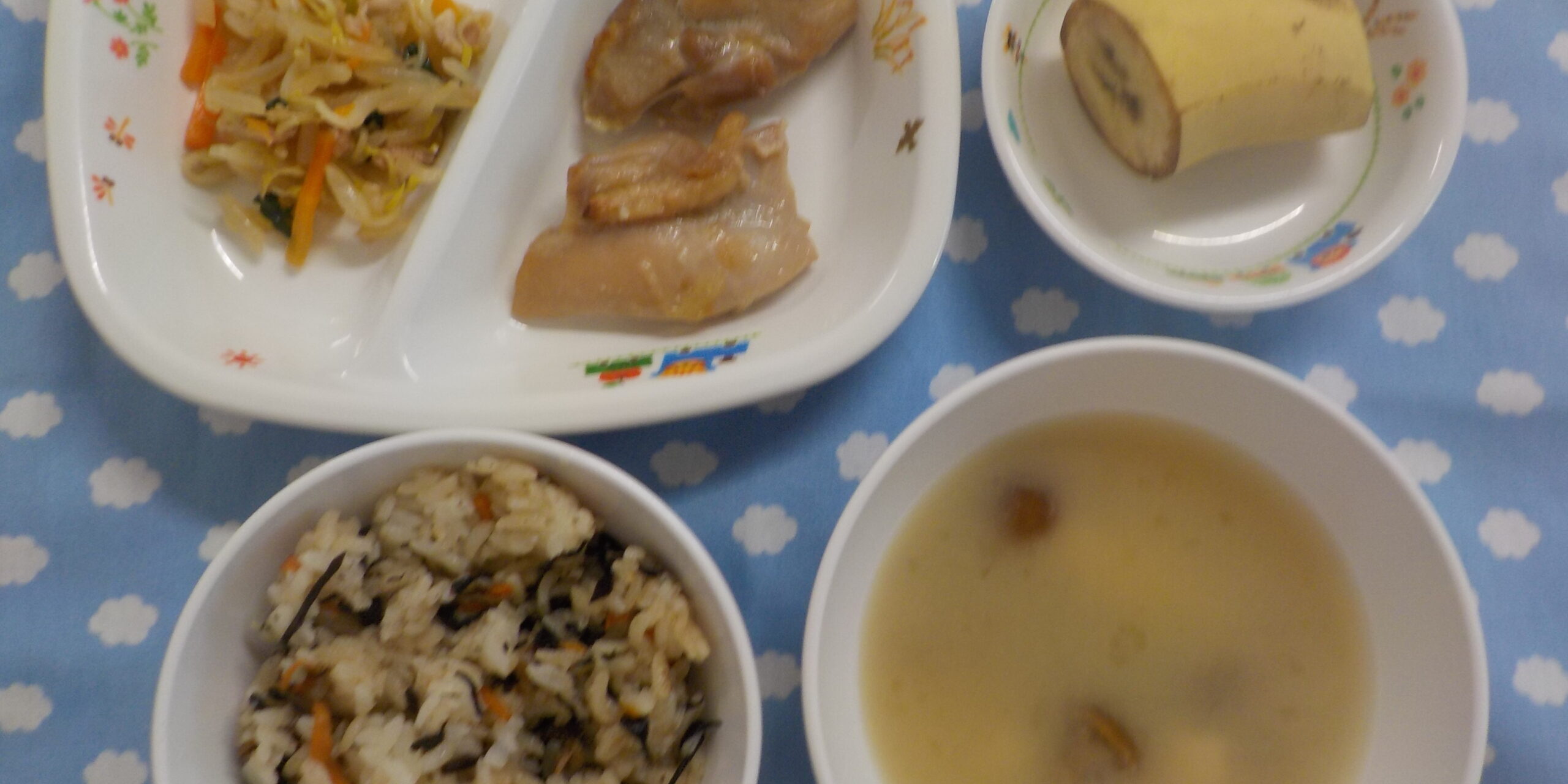10月192022あおぞら給食 <給食> ・鶏肉の照り焼き ・彩りナムル ・ひじきごはん ・味噌汁 ・バナナ <おやつ> ・牛乳 ・みそポテト Category: あおぞら給食2022年10月19日 Share this post Share on FacebookShare on Facebook Share on XShare on X Post navigationPreviousPrevious post:令和4年度 第3回 子育て講座「子どもの発達について」NextNext post:10月19日(水)Related posts12月3日(水)2025年12月3日12月2日(火)2025年12月2日12月1日(月)2025年12月1日11月29日(土)2025年11月29日11月28日(金)2025年11月28日11月27日(木)2025年11月27日11月26日(水)2025年11月26日11月25日(火)2025年11月25日11月22日(土)2025年11月22日11月21日(金)2025年11月21日11月20日(木)2025年11月20日11月19日(水)2025年11月19日11月18日(火)2025年11月18日11月17日(月)2025年11月17日11月15日(土)2025年11月15日11月14日(金)2025年11月14日11月13日(木)2025年11月13日11月12日(水)2025年11月12日11月11日(火)2025年11月11日11月10日(月) ☆七五三メニュー2025年11月10日11月8日(土)2025年11月8日11月7日(金)2025年11月8日11月6日(木)2025年11月6日11月5日(水)2025年11月5日