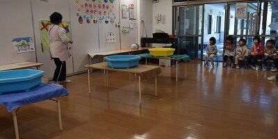 前回に手洗い指導をしたこともあり、子ども達は手洗いの歌を覚えていました!