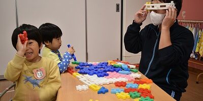 自分の作りたいものを考え、ブロックでお店屋さんごっこをしたり、自分のお家を作って楽しんでいました。