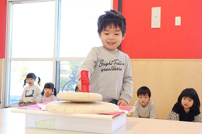 保育園でも飾っていた鏡もちを「みんなで1年元気に幸せに過ごせます様に」と願いを込めて力いっぱい開きます。