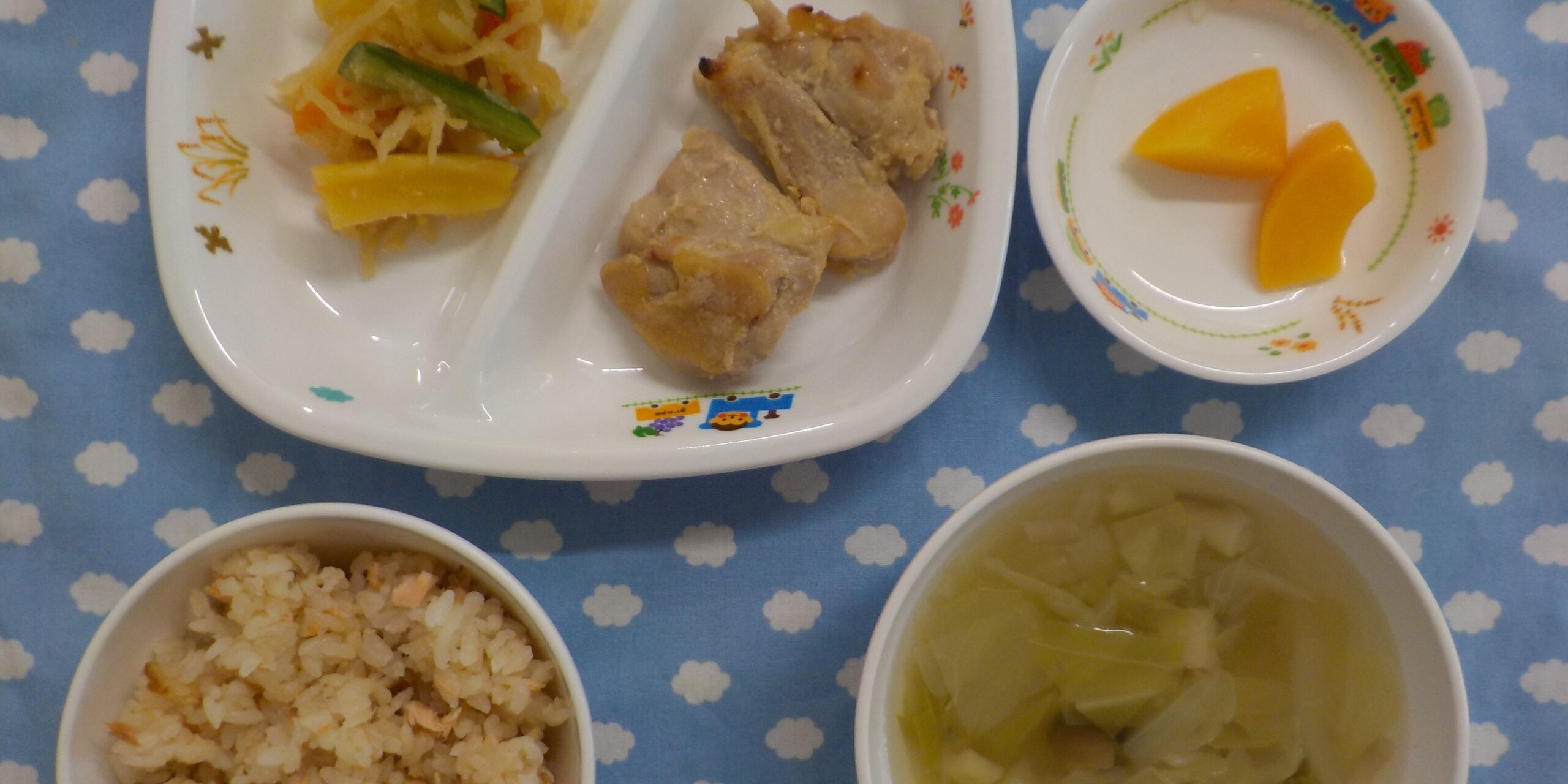 1月192023あおぞら給食 <給食> ・鶏肉のみそ焼き ・カミカミ和え ・鮭ごはん ・中華スープ ・もも <おやつ> ・牛乳 ・ヨーグルトケーキ Category: あおぞら給食2023年1月19日 Share this post Share on FacebookShare on Facebook Share on XShare on X Post navigationPreviousPrevious post:1月18日(水)NextNext post:1月20日(金)Related posts10月30日(木) ☆ハロウィンメニュー2025年10月30日10月29日(水)2025年10月29日10月28日(火)2025年10月28日10月27日(月)2025年10月27日10月25日(土)2025年10月25日10月24日(金)2025年10月24日10月23日(木)2025年10月23日10月22日(水)2025年10月22日10月21日(火)2025年10月21日10月20日(月)2025年10月20日10月18日(土)2025年10月18日10月17日(金)2025年10月17日10月16日(木)2025年10月16日10月15日(水)2025年10月15日10月14日(火)2025年10月14日10月11日(土)2025年10月11日10月10日(金)2025年10月10日10月9日(木)2025年10月9日10月8日(水)2025年10月8日10月7日(火)2025年10月7日10月6日(月)2025年10月6日10月4日(土)2025年10月4日10月3日(金)2025年10月3日10月2日(木)2025年10月2日