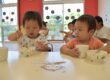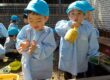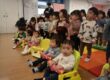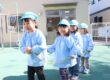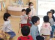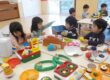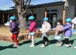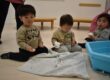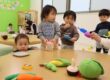 その後、保育者が新聞で作ったおにぎりや焼き芋などを袋の中に入れてお買い物ごっこを楽しんでます。