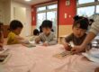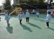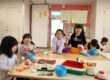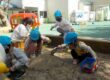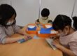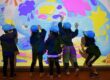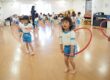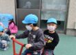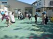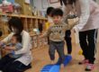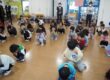 ビリビリした新聞紙をたくさん集めて新聞シャワーをするとても大興奮な子ども達。