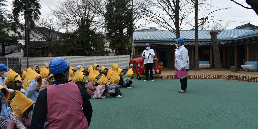 冷たい風が吹く園庭も温かな拍手に包まれメリハリのある避難訓練になりました。