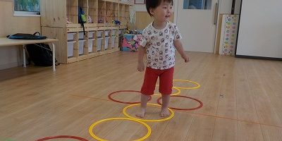 鉄棒が終わった後はフラフープとフラフープをジャンプで