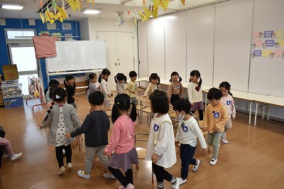 先生のピアノに合わせて椅子取りゲームを全力で楽しみました!
