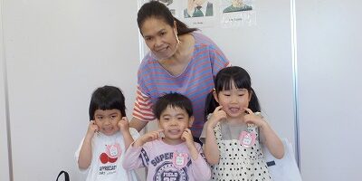 アルマ先生に「How old are you?」と聞かれると「I’m three」「I’m four」と先生と一緒に元気に発音することが出来ました。