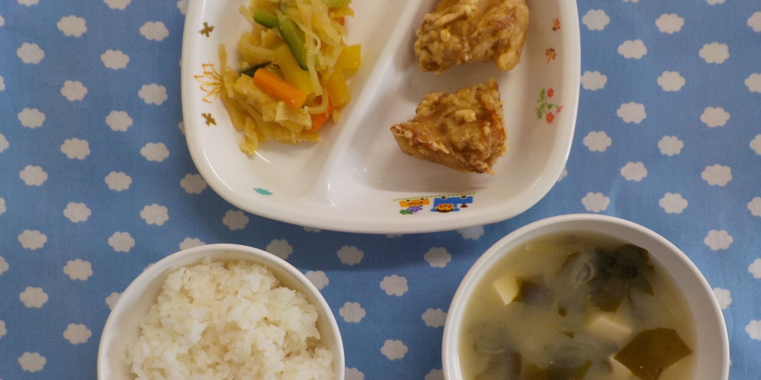 4月242023あおぞら給食 <給食> ・鶏肉のからあげ ・カミカミ和え ・ごはん ・味噌汁 <おやつ> ・麦茶 ・お誕生日ケーキ Category: あおぞら給食2023年4月24日 Share this post Share on FacebookShare on Facebook Share on XShare on X Post navigationPreviousPrevious post:4月22日(土)NextNext post:4月24日(月)Related posts11月1日(土)2025年11月1日10月31日(金)2025年11月1日10月30日(木) ☆ハロウィンメニュー2025年10月30日10月29日(水)2025年10月29日10月28日(火)2025年10月28日10月27日(月)2025年10月27日10月25日(土)2025年10月25日10月24日(金)2025年10月24日10月23日(木)2025年10月23日10月22日(水)2025年10月22日10月21日(火)2025年10月21日10月20日(月)2025年10月20日10月18日(土)2025年10月18日10月17日(金)2025年10月17日10月16日(木)2025年10月16日10月15日(水)2025年10月15日10月14日(火)2025年10月14日10月11日(土)2025年10月11日10月10日(金)2025年10月10日10月9日(木)2025年10月9日10月8日(水)2025年10月8日10月7日(火)2025年10月7日10月6日(月)2025年10月6日10月4日(土)2025年10月4日