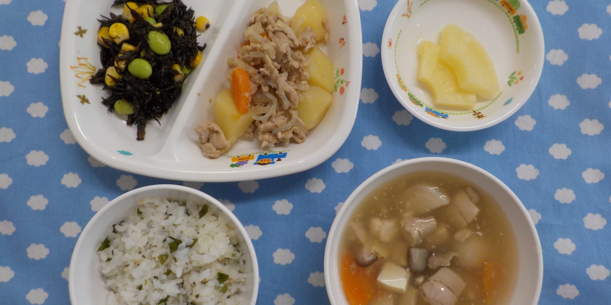 5月202023あおぞら給食 <給食> ・肉じゃが ・ひじきのサラダ ・わかめごはん ・のっぺい汁 ・パイン <おやつ> ・牛乳 ・かぼちゃもち Category: あおぞら給食2023年5月20日 Share this post Share on FacebookShare on Facebook Share on XShare on X Post navigationPreviousPrevious post:5月20日(土)NextNext post:5月22日(月)Related posts12月8日(月)2025年12月8日12月6日(土)2025年12月6日12月5日(金)2025年12月5日12月4日(木)2025年12月4日12月3日(水)2025年12月3日12月2日(火)2025年12月2日12月1日(月)2025年12月1日11月29日(土)2025年11月29日11月28日(金)2025年11月28日11月27日(木)2025年11月27日11月26日(水)2025年11月26日11月25日(火)2025年11月25日11月22日(土)2025年11月22日11月21日(金)2025年11月21日11月20日(木)2025年11月20日11月19日(水)2025年11月19日11月18日(火)2025年11月18日11月17日(月)2025年11月17日11月15日(土)2025年11月15日11月14日(金)2025年11月14日11月13日(木)2025年11月13日11月12日(水)2025年11月12日11月11日(火)2025年11月11日11月10日(月) ☆七五三メニュー2025年11月10日