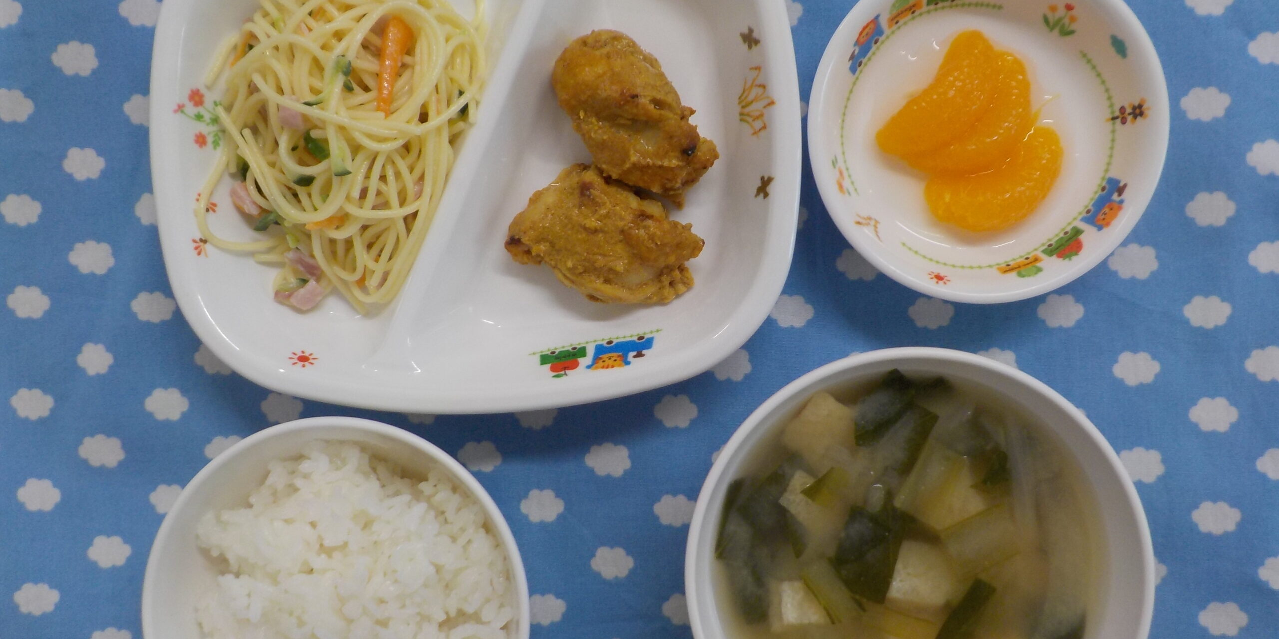 5月232023あおぞら給食 <給食> ・タンドリーチキン ・スパゲティサラダ ・ごはん ・味噌汁 ・みかん <おやつ> ・牛乳 ・とうふドーナツ Category: あおぞら給食2023年5月23日 Share this post Share on FacebookShare on Facebook Share on XShare on X Post navigationPreviousPrevious post:5月22日(月)NextNext post:5月23日(火)Related posts10月30日(木) ☆ハロウィンメニュー2025年10月30日10月29日(水)2025年10月29日10月28日(火)2025年10月28日10月27日(月)2025年10月27日10月25日(土)2025年10月25日10月24日(金)2025年10月24日10月23日(木)2025年10月23日10月22日(水)2025年10月22日10月21日(火)2025年10月21日10月20日(月)2025年10月20日10月18日(土)2025年10月18日10月17日(金)2025年10月17日10月16日(木)2025年10月16日10月15日(水)2025年10月15日10月14日(火)2025年10月14日10月11日(土)2025年10月11日10月10日(金)2025年10月10日10月9日(木)2025年10月9日10月8日(水)2025年10月8日10月7日(火)2025年10月7日10月6日(月)2025年10月6日10月4日(土)2025年10月4日10月3日(金)2025年10月3日10月2日(木)2025年10月2日