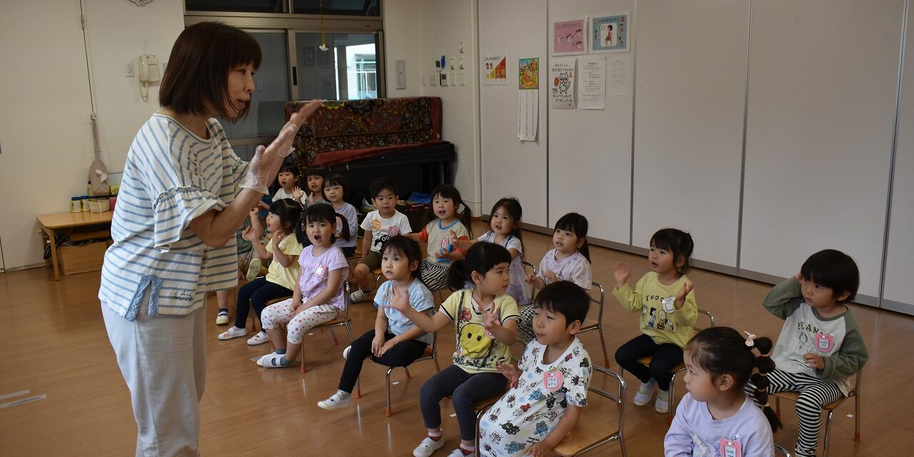 子ども達からは、「Hello hello what’s your name? My name is ~」と音楽に合わせて元気な声で英語の歌を歌っていました。