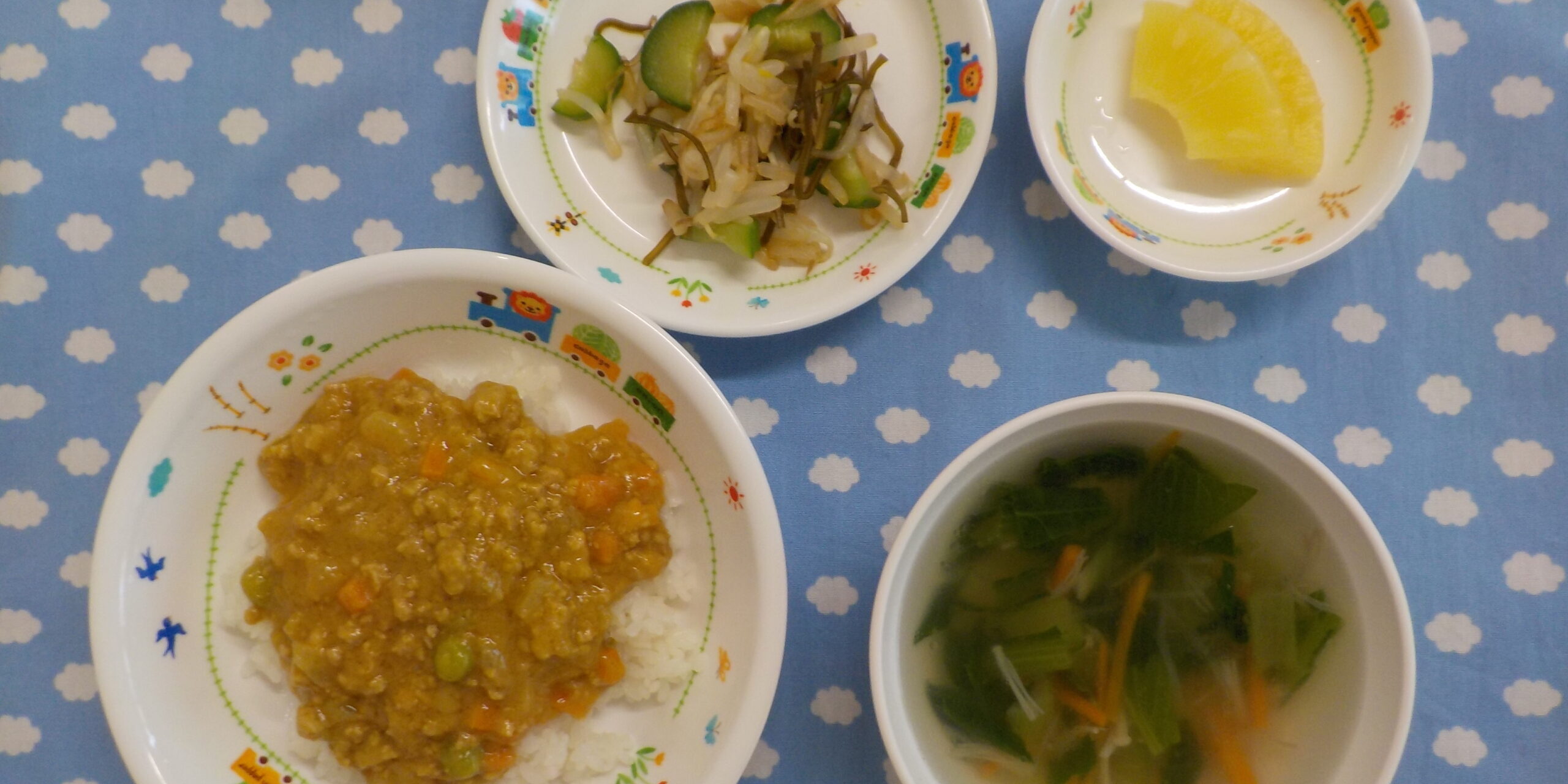 6月172023あおぞら給食 <給食> ・キーマカレー ・きゅうりの塩こんぶ和え ・はるさめスープ ・パイン <おやつ> ・牛乳 ・カルピスゼリー ・バタービスケット Category: あおぞら給食2023年6月17日 Share this post Share on FacebookShare on Facebook Share on XShare on X Post navigationPreviousPrevious post:6月16日(金)NextNext post:第1回 地域公開保育についてRelated posts12月5日(金)2025年12月5日12月4日(木)2025年12月4日12月3日(水)2025年12月3日12月2日(火)2025年12月2日12月1日(月)2025年12月1日11月29日(土)2025年11月29日11月28日(金)2025年11月28日11月27日(木)2025年11月27日11月26日(水)2025年11月26日11月25日(火)2025年11月25日11月22日(土)2025年11月22日11月21日(金)2025年11月21日11月20日(木)2025年11月20日11月19日(水)2025年11月19日11月18日(火)2025年11月18日11月17日(月)2025年11月17日11月15日(土)2025年11月15日11月14日(金)2025年11月14日11月13日(木)2025年11月13日11月12日(水)2025年11月12日11月11日(火)2025年11月11日11月10日(月) ☆七五三メニュー2025年11月10日11月8日(土)2025年11月8日11月7日(金)2025年11月8日