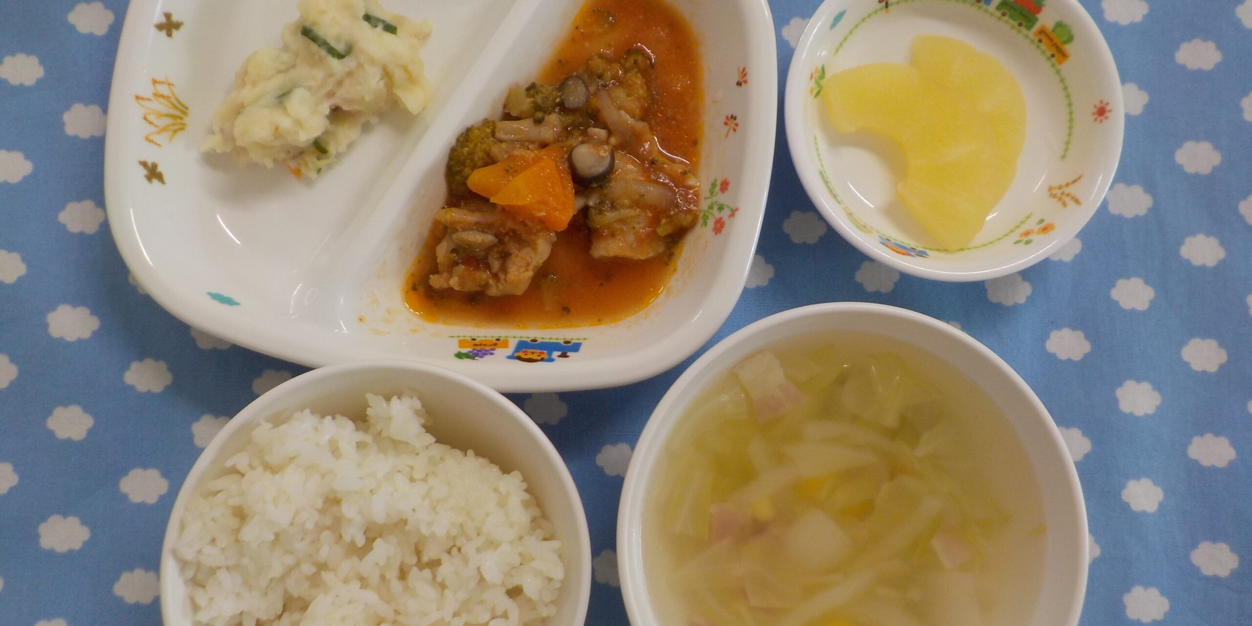 6月192023あおぞら給食 <給食> ・鶏肉のトマト煮 ・ツナポテトサラダ ・ごはん ・コンソメスープ ・りんご <おやつ> ・牛乳 ・メロンパンクッキー Category: あおぞら給食2023年6月19日 Share this post Share on FacebookShare on Facebook Share on XShare on X Post navigationPreviousPrevious post:6月19日(月)NextNext post:6月20日(火)Related posts11月1日(土)2025年11月1日10月31日(金)2025年11月1日10月30日(木) ☆ハロウィンメニュー2025年10月30日10月29日(水)2025年10月29日10月28日(火)2025年10月28日10月27日(月)2025年10月27日10月25日(土)2025年10月25日10月24日(金)2025年10月24日10月23日(木)2025年10月23日10月22日(水)2025年10月22日10月21日(火)2025年10月21日10月20日(月)2025年10月20日10月18日(土)2025年10月18日10月17日(金)2025年10月17日10月16日(木)2025年10月16日10月15日(水)2025年10月15日10月14日(火)2025年10月14日10月11日(土)2025年10月11日10月10日(金)2025年10月10日10月9日(木)2025年10月9日10月8日(水)2025年10月8日10月7日(火)2025年10月7日10月6日(月)2025年10月6日10月4日(土)2025年10月4日