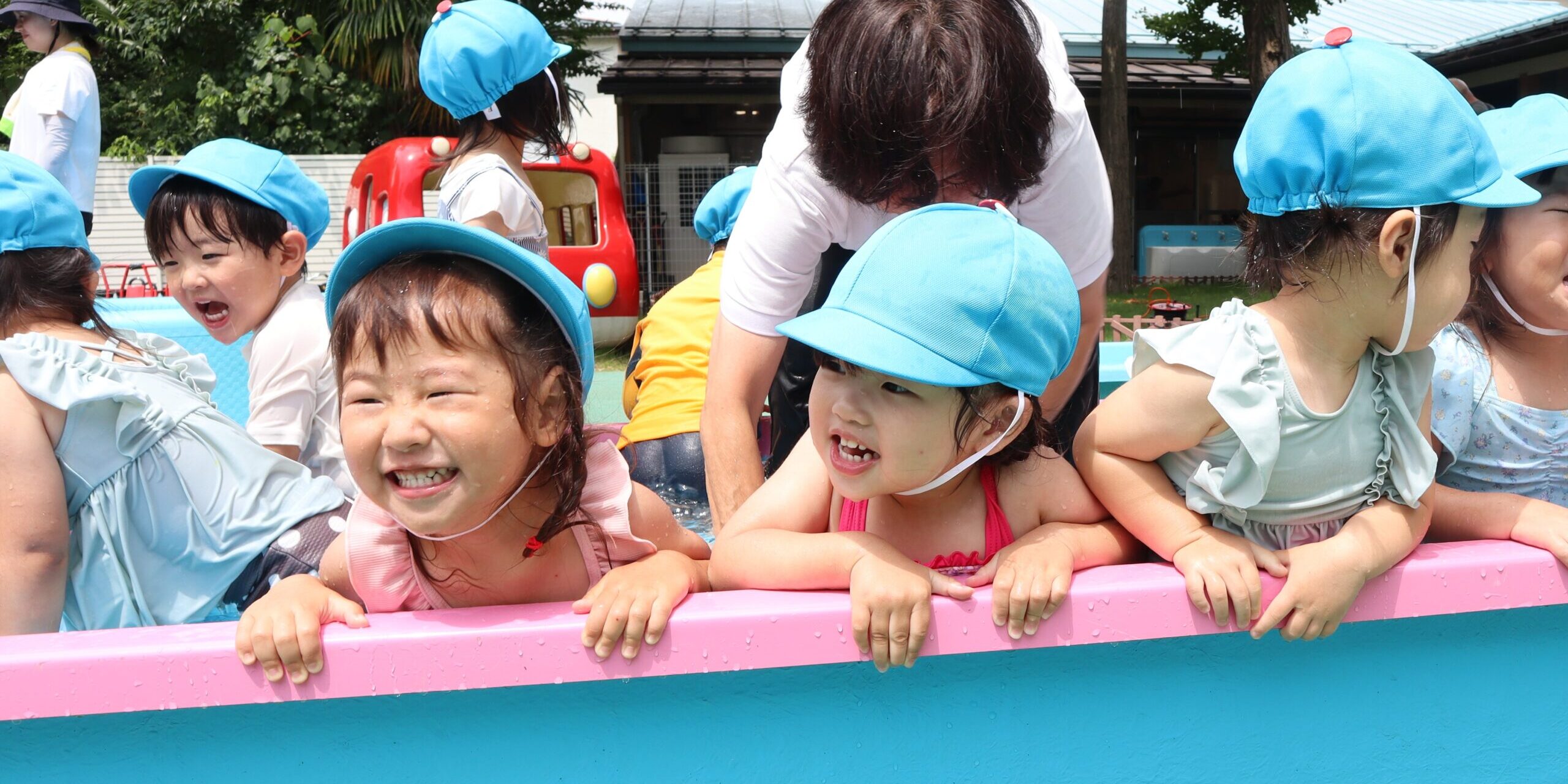 次は手で水をすくって自分に水をかけたり、お友だち同士で水をかけあったりしました。