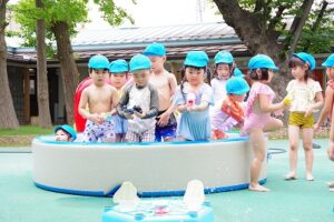 一生懸命バタ足をしたり、水鉄砲の的の狙い方を教わったりしながら楽しみました。