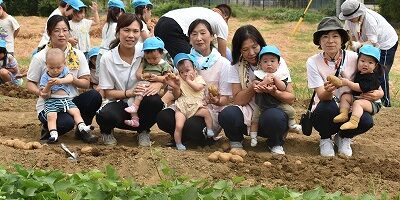 こでまり組さんは、保育者が掘ってくれたじゃがいもを見たり触って楽しんでいます。