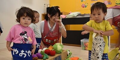お部屋に戻ってからは、お店屋さんごっこをしました。「いらっしゃいませー」「これください」