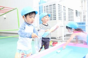 今日のちゅーりっぷ組の水遊びや魚釣りゲームの様子です。