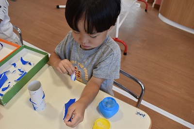 いつもは元気いっぱいのなでしこ組さんですが、製作は大好きで、とても真剣に取り組んでいました。