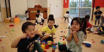 ちゅーりっぷ組のブロック遊び友だちや保育者と一緒に高く高く積んでみたり、大きな駅を作って遊びを思いっきり楽しんでいます!