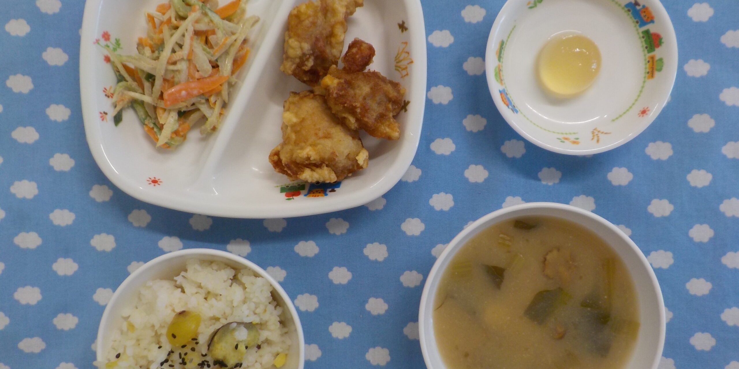 11月202023あおぞら給食 <給食> ・鶏肉のから揚げ ・ごぼうサラダ ・さつまいもごはん ・味噌汁 ・ミニゼリー <おやつ> ・牛乳 ・ミニピザ Category: あおぞら給食2023年11月20日 Share this post Share on FacebookShare on Facebook Share on XShare on X Post navigationPreviousPrevious post:11月18日(土)NextNext post:11月20日(月)Related posts12月15日(火)2025年12月15日12月13日(土)2025年12月13日12月12日(金)2025年12月12日12月11日(木)2025年12月11日12月10日(水)2025年12月10日12月9日(火)2025年12月9日12月8日(月)2025年12月8日12月6日(土)2025年12月6日12月5日(金)2025年12月5日12月4日(木)2025年12月4日12月3日(水)2025年12月3日12月2日(火)2025年12月2日12月1日(月)2025年12月1日11月29日(土)2025年11月29日11月28日(金)2025年11月28日11月27日(木)2025年11月27日11月26日(水)2025年11月26日11月25日(火)2025年11月25日11月22日(土)2025年11月22日11月21日(金)2025年11月21日11月20日(木)2025年11月20日11月19日(水)2025年11月19日11月18日(火)2025年11月18日11月17日(月)2025年11月17日