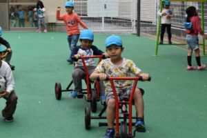 「次は○○です、○○です」や「次、前に乗らせてね!」と約束をしたりして仲良く遊んでいます。