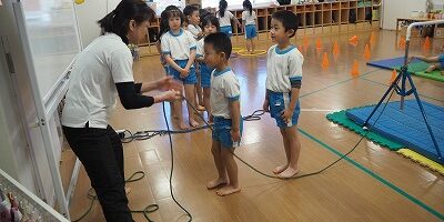 体操指導では大繩とびに挑戦しています。