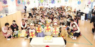2月のお誕生日会、1つ年齢が上がり自分たちの成長を友だちや保育者に祝ってもらいとても楽しい会でした。