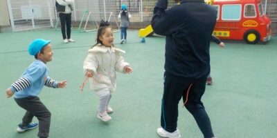 しっぽ取りでは、保育者や友だちにしっぽを取られないようにしたり、しっぽをつけている人を追いかけたりして楽しく遊びました。