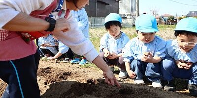 みんなで仲良くじゃがいもの苗植えをしまてきました。