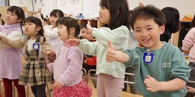 また、「slowly!」と言いながらゆっくり動いたり、「quick!」と言いながら早く動いたりと、実際に身体を動かしながら言葉の違いについて覚えることが出来ました。